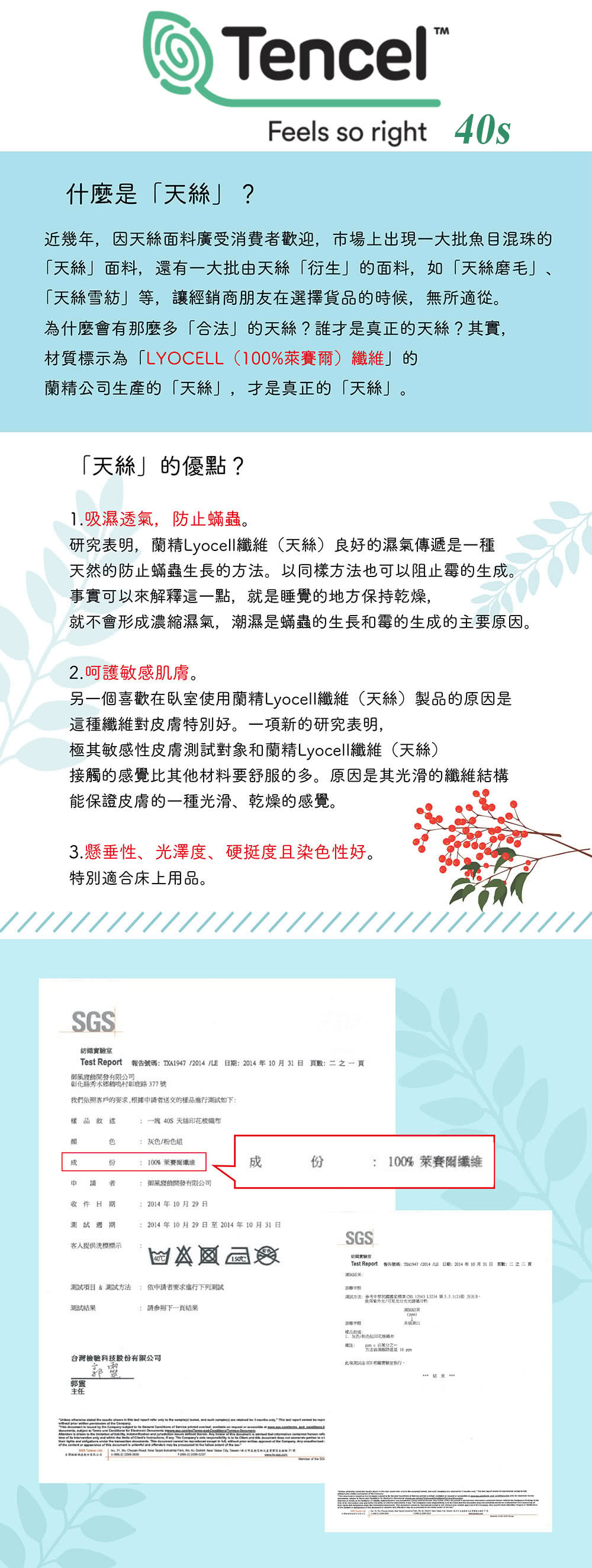 表布(上/下表布)100%萊賽爾纖維(頂級天絲)