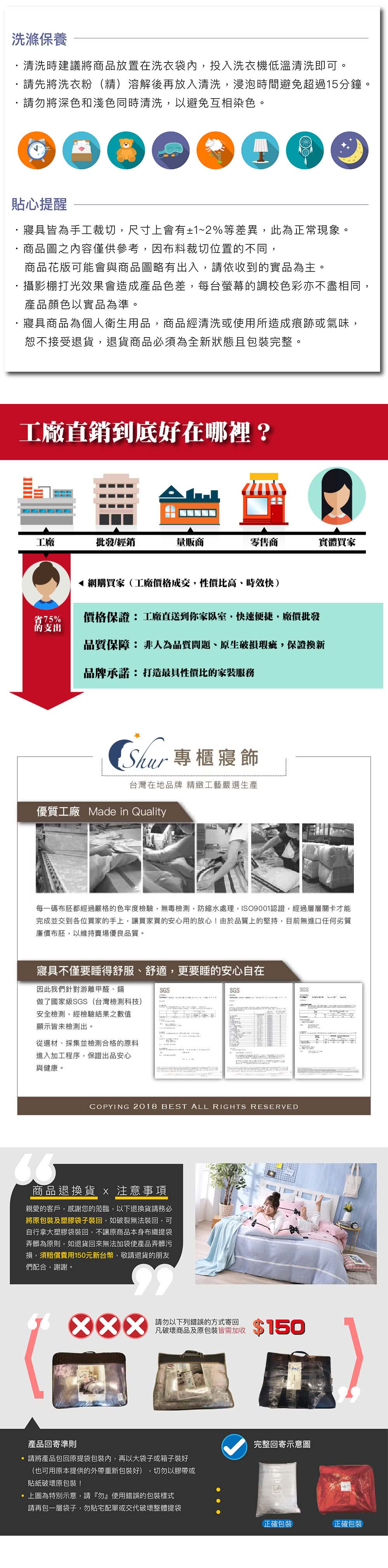 寢具商品屬為個人衛生用品,經使用或下水後,恕不接受退換貨