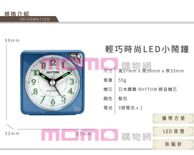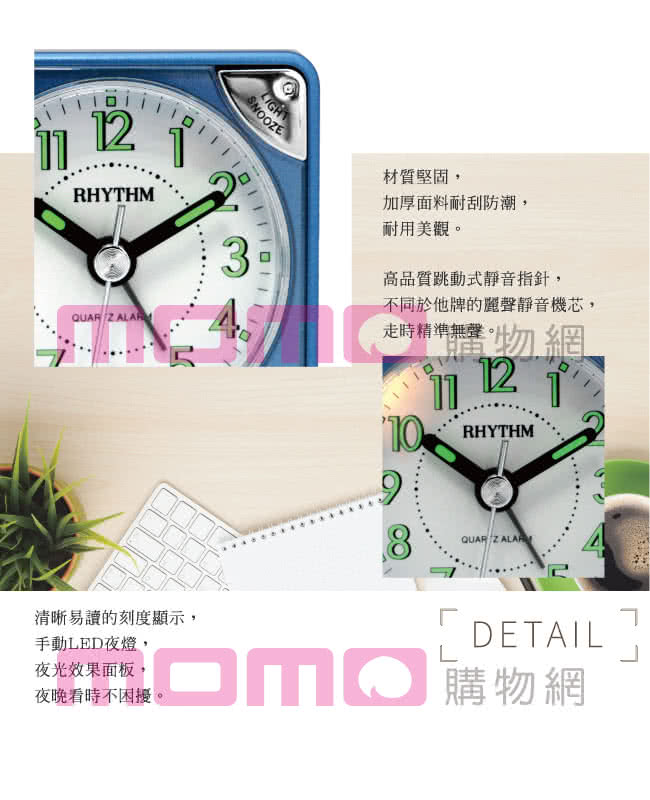 一起來看看這款【RHYTHM 麗聲】輕巧時尚LED夜光貪睡便攜小鬧鐘(爵士藍)吧!!!